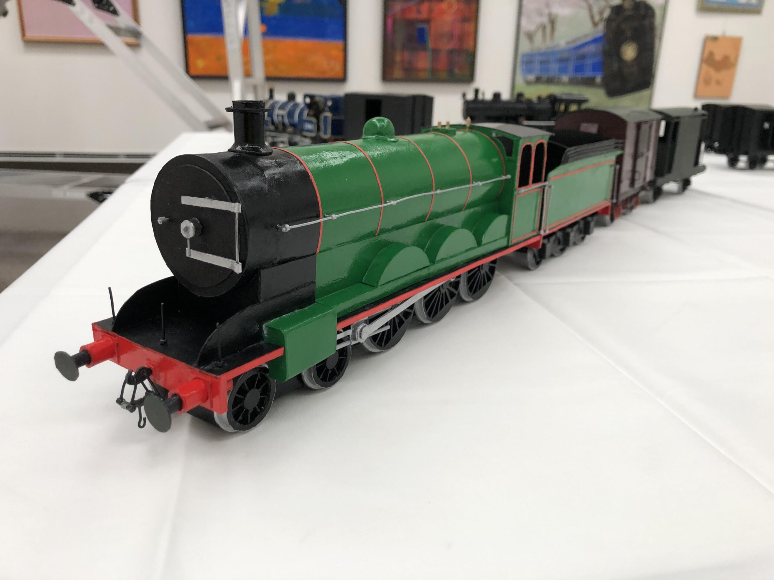 絵機関車の模型を作っています。主に厚紙で、細部を爪楊枝など身近な物も使用しています。